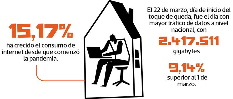 El 22 de marzo, día de inicio de toque de queda, fue el día con mayor tráfico de datos a nivel nacional, con 2.417.511 gigabytes, un 9,14% superior al 1 de marzo.