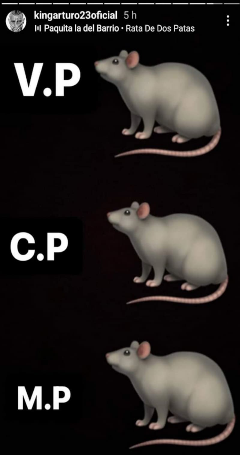 Era casi un mensaje en clave. Una de las stories que el futbolista subió a su cuenta de Instagram en marzo pasado mostraba las siglas V.P, C.P. y M.P., cada una de ellas acompañadas del emoticón de un ratón y musicalizado con el melodramático tema “Rata de dos patas”, de la cantautora mexicana Paquita la del Barrio.