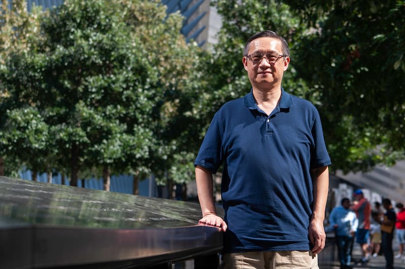 Chea, peruano de padres chinos, llegó a Estados Unidos a los 11 años. Algo habla el español, pero prefiere comunicarse en inglés. Usa anteojos y lleva mascarilla, a pesar de que en Nueva York está permitido prescindir de ella al aire libre. Parece un tipo simpático. Se ríe bastante durante la conversación, sentado a la sombra en el parque que honra el recuerdo. La mañana del 11/S estaba sentado en su escritorio en el 49º piso de la Torre Norte, la primera en ser impactada. Mientras realizaba labores programáticas frente al computador, que no mucho lo motivaban, sintió como un fuerte terremoto el choque del avión. Hoy, cuenta que cuando se mueve el piso por la razón que sea, su adrenalina sube de manera abrupta. Por entonces se dirigió rápidamente a las escaleras y antes de completar la evacuación, se cruzó con los socorristas quienes iban valientemente hacia arriba.
