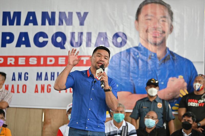 Con solo un 7% de la intención de voto, más atrás aparece el senador y excampeón mundial de boxeo, Manny Pacquiao. Héroe nacional para los filipinos, “PacMan” se perfila como un conservador religioso, a favor de la pena de muerte y contrario al matrimonio entre personas del mismo sexo. Una de sus principales promesas es el combate contra la corrupción, y luego de años siendo un estrecho aliado de Duterte, el boxeador desafío su liderazgo y sus posiciones sobre China, enemistándose así con todo su partido político.