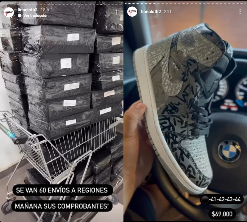 Si en el comercio establecido un par de “Air Jordan 1″ cuesta $142 mil, en tiendas informales como “Lion Cloth” su valor llega a sólo a $50 mil o incluso menos si se compra al por mayor. Otros modelos, como la “Air Jordan 7″, que en tiendas se vende a $226 mil, en la red social se consigue a $69 mil. Entre sus publicaciones, el vendedor se jacta de haber vendido ocho mil pares de zapatillas durante todo el año pasado.