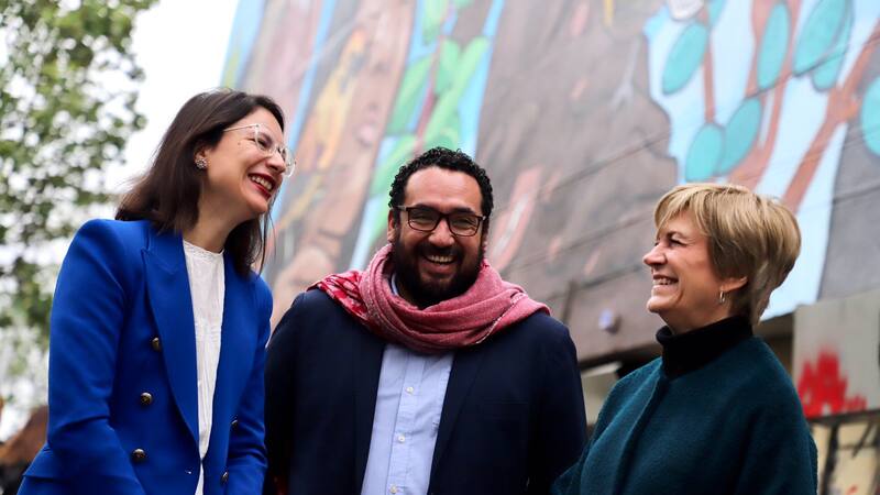 Era una pauta de prensa en la Zona Cero del estallido social. Las alcaldesas de Providencia, Evelyn Matthei (UDI), y de Santiago, Irací Hassler (PC), junto al subsecretario de Desarrollo Regional, Nicolás Cataldo (PC), firmaban un convenio para recuperar espacios públicos en barrios afectados por el estallido.