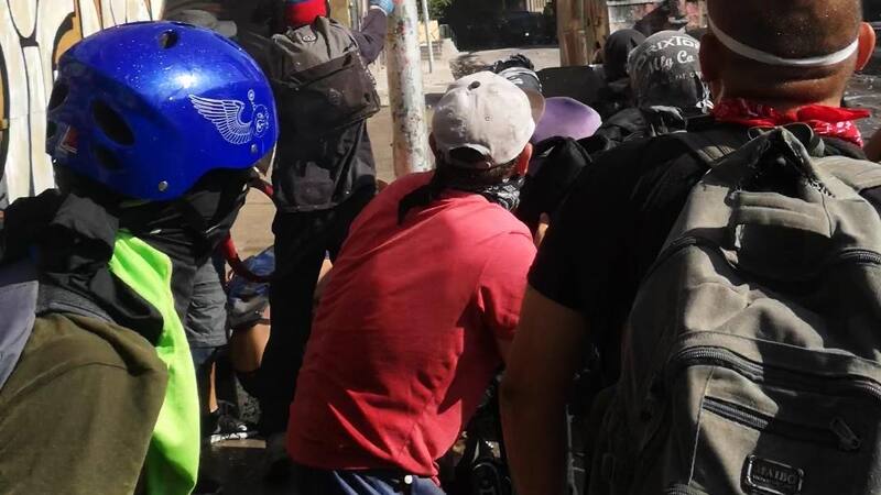 Espinoza, declaró Gaete, lo llevó hasta Zenteno, Rojas y otros dos menores de edad que eran parte del grupo que, minutos después, fabricaría molotov en la calle usando un bidón azul y se las lanzarían repetidamente a un carro lanzagua de Fuerzas Especiales y a un acceso de la Estación Baquedano. Luego se dispersarían y, minutos después, serían perseguidos y arrestados por carabineros.