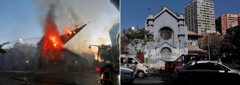 Las iglesias de la Veracruz, San Borja y de la Asunción fueron las más dañadas: el fuego las dejó en ruinas. Y el monumento más emblemático, que fue permanentemente vandalizado, con intentos de derrumbe (le cortaron una pata al caballo), fue el del General Baquedano en Plaza Italia. Y este es, precisamente, una de las obras restauradas, gracias al financiamiento de la Intendencia, si bien aún no regresa a su sitial.
