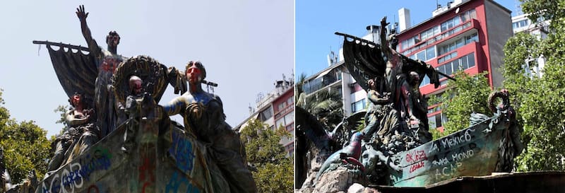 Aquí una revisión al estado actual de algunos edificios patrimoniales y monumentos públicos dañados dañados tras el 18 de octubre.