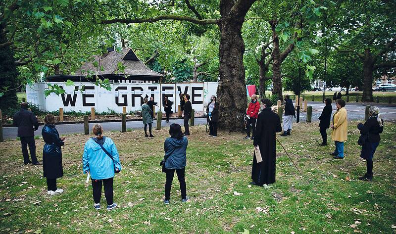 Sin embargo, muchos no han podido esperar y en el parque del distrito londinense de Hackney, grandes letras blancas con el mensaje “We grieve” reflejan un espacio común construido por los vecinos, como una suerte de conmemoración improvisada para las víctimas de Covid-19.