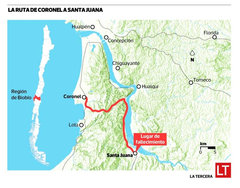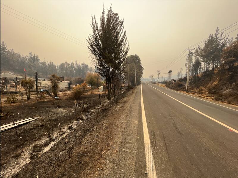 Se subieron al carro F-3 de la Unidad Forestal y partieron a la comuna vecina, distante a unos 40 kilómetros, por la carretera O-852, más conocida como Patagual. Esa ruta es constante foco de incendios, la que en ese momento ya presentaba escasa visibilidad debido a los incendios que llevaban activos cerca de 48 horas. Apenas se podía apreciar el río Biobío que acompaña el camino.