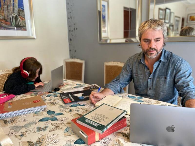 Mi mujer trabaja en forma presencial y, durante la cuarentena, me quedé de dueño de casa con mis dos hijas y mi hijo. La más chica seguía sus clases desde nuestro comedor improvisado como oficina, que compartimos en el encierro. Desde ahí seguí trabajando, escribiendo, teniendo reuniones por Zoom y haciendo entrevistas por Instagram Live.