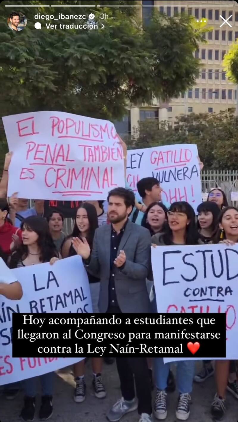La molestia de Apruebo Dignidad se hizo aún más evidente durante la tarde de ese martes, en la antesala de la votación en el Senado -en la que el PC y RD votaron en contra-. Mientras Tohá ordenaba a sus filas en el Congreso, en las afueras del Parlamento había una manifestación estudiantil en contra de la Ley Nain-Retamal convocada por universitarios de Santiago y Valparaíso. En ella, el diputado Ibáñez -presidente del partido de Boric- decidió participar y subir la imagen a su Instagram. En la foto, al lado de Ibáñez, aparecía protestando Matilde Salinas Tohá, estudiante de Derecho en la Universidad de Chile y militante de Convergencia Social. La hija de la ministra del Interior.
