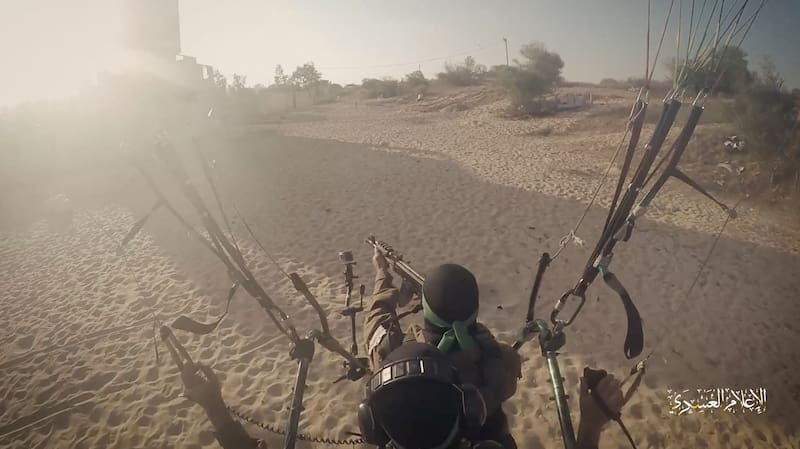 - El primer movimiento fue una andanada de 3.000 cohetes disparados desde Gaza que coincidió con incursiones de combatientes que volaban en parapentes y paracaídas sobre la frontera.
