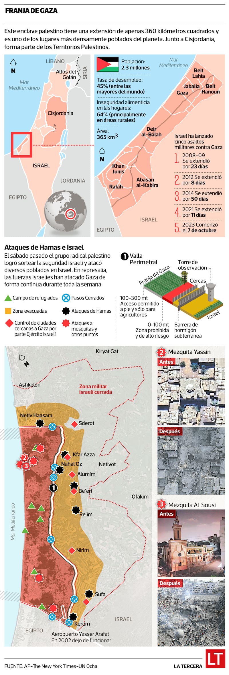 En los últimos días, las fuerzas israelíes han llevado ataques aéreos indiscriminados contra distintos puntos en Gaza. Según ciudadanos palestinos citados por The New York Times, mezquitas, hospitales y colegios han sido blancos en los bombardeos. El viernes Israel desarrolló “incursiones localizadas” con tropas y tanques. De concretarse una ofensiva terrestre a gran escala, las consecuencias podrían ser globales.