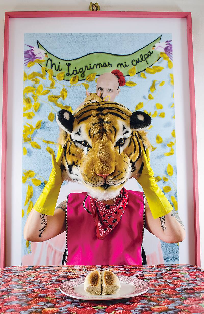 Tomé esta foto durante el mes de junio, en mi casa. Era para una invitación del Museo de la Mujer (NMWA), donde nos pedían una reflexión sobre nuestra vida en pandemia. Tomarla fue un tedio: mi cámara estaba mala, le tuve que pedir la suya a una amiga y, además, hacía tiempo que no hacía autorretratos con cámara. Fue difícil, porque, debido al confinamiento, me encontraba muy irritable en ese periodo y todo me costaba más de lo habitual. Tenía que abarcar un tema no político y para mí, desde el 2019 hasta ahora, todo es político. Quise representar la precariedad de este sistema gubernamental en que nos encontramos los chilenos. También, la posición de la mujer en este periodo en una sociedad machista, donde, además de laborar, debes preparar todo en casa. No podía encantarme con esta imagen si miraba por la ventana y veía a mis vecinos indigentes. Sentía que mi fotografía era estúpida.