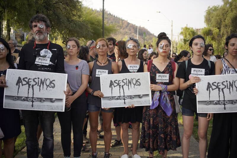 La primera foto la tomé en una movilización de diversos actores. El mundo de la cultura activo, que se movilizó durante el estallido social. Es una imagen que se construye junto a la participación en una manifestación de protesta.