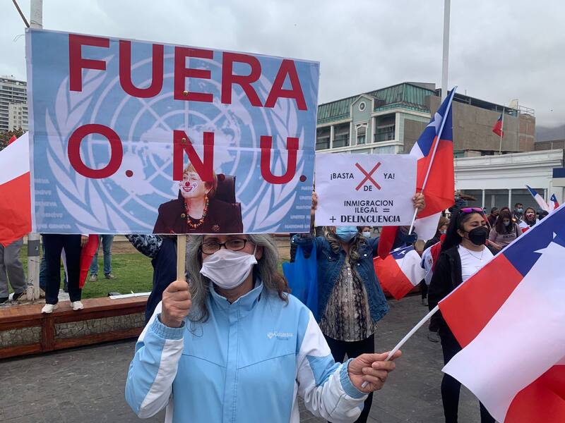 Sepúlveda desplegó una gran bandera chilena y un cartel contra Miguel Ángel Quezada, el delegado presidencial en la región: —La marcha no era contra los migrantes, sino contra las autoridades incompetentes — asegura—. Gritábamos: ‘Fuera la ONU, fuera el delegado presidencial, el culpable es Piñera’.