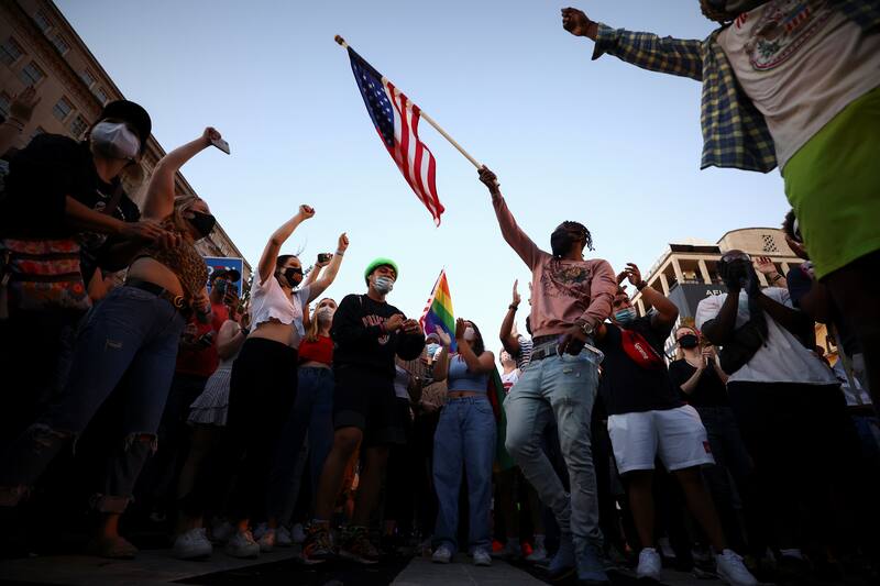 Apenas conocida la noticia, miles de seguidores de Joe Biden salieron a las calles en distintas partes del país para celebrar espontáneamente la victoria demócrata. Imágenes en Time Square en Nueva York; en Chicago; afuera de la Casa Blanca en Washington D.C.; en Atlanta, Georgia; y en Filadelfia, Pennsylvania -entre muchos otros-, mostraron a una multitud que gritaba “U.S.A”, mientras otros bailaban, lloraban, se abrazaban y descorchaban botellas de champaña. El ambiente era una fiesta, en su mayoría sin distanciamiento social, pero con mascarillas.