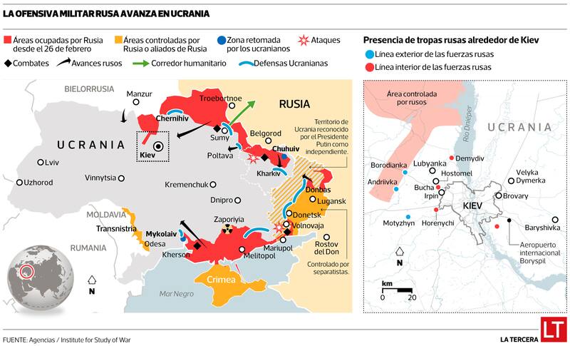 Por Bastián DíazKiev: Rusia estrecha cerco a capital y eleva amenaza por envío de armas