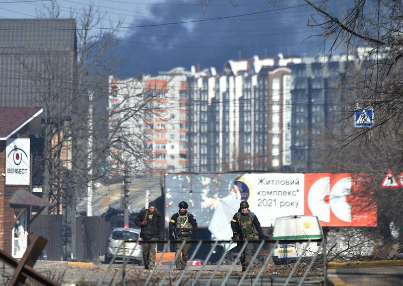 Informes de los servicios de espionaje británicos aseguran que las tropas rusas ya se encuentran a 25 kilómetros de la capital, donde la artillería golpea barrios residenciales sin que la infantería se acerque mucho. Los bombardeos destruyeron un almacén de productos congelados y dos depósitos de petróleo.