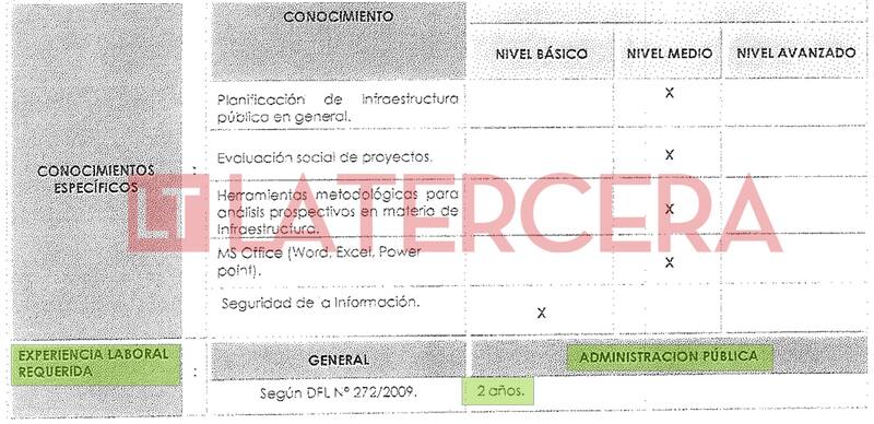 De acuerdo al perfil del cargo obtenido por La Tercera a través de la Ley de Transparencia, el puesto considera una alta responsabilidad en la toma de decisiones. Al mismo tiempo, se exigía un requisito mínimo con el que Andrade no cumplía. “Experiencia laboral requerida: un año en la administración pública”, se lee en el documento.