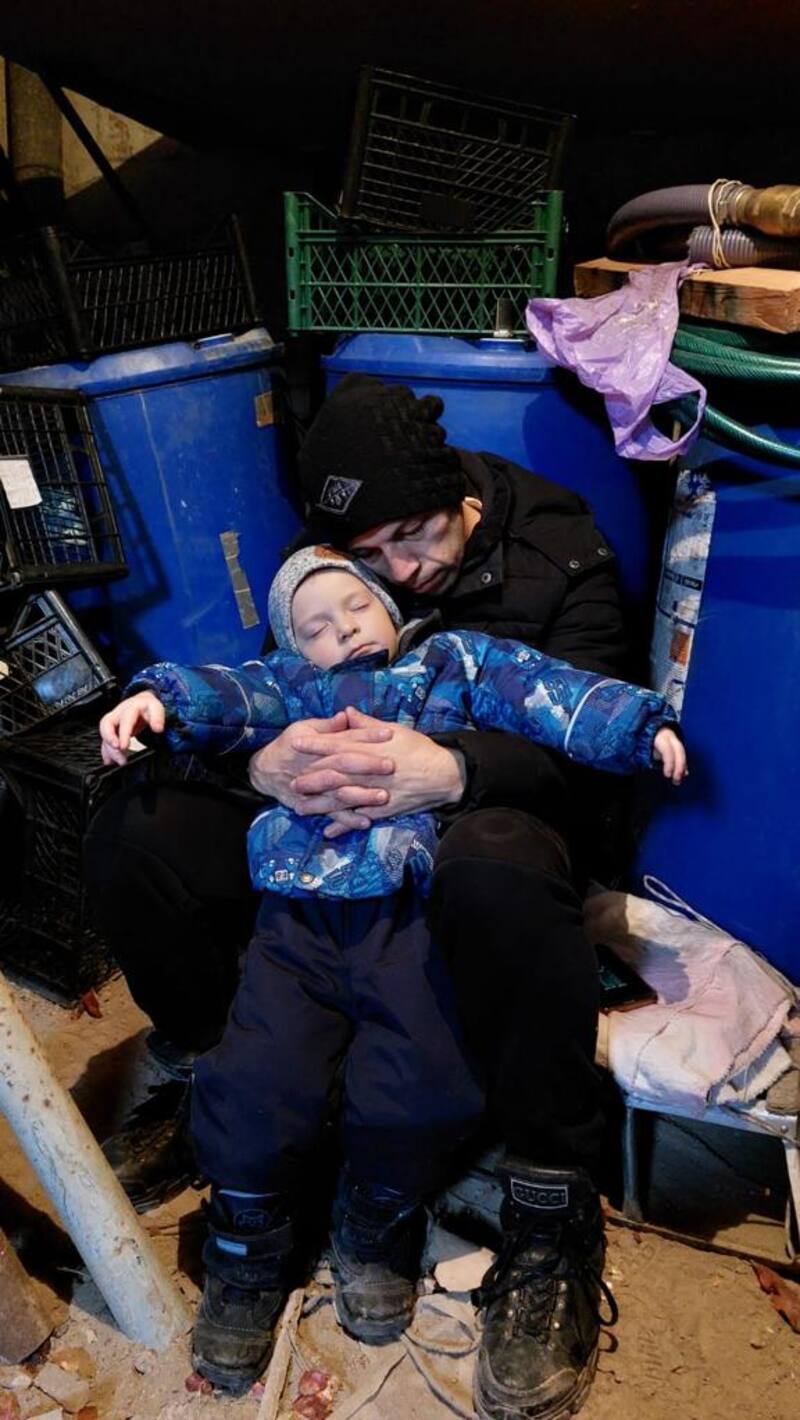 “En un minuto hubo una pausa entre los bombardeos. Ahí le pregunté a mi suegro ¿qué iba a hacer? Y él me respondió que nada, que esperar. Le dije que había que ser frío, que yo no quería poner a mi familia en riesgo y que lo mejor era irnos de Kharkiv, pero finalmente nos fuimos a su garaje cubierto, que nosotros llamamos búnker: tenía un techo de concreto con un grosor de 30 centímetros. Mi suegro era dueño de dos contiguos. Uno, donde él trabajaba, que tenía una chimenea, y otro, donde metía su auto y estaba la única entrada. Ese que usaba como estacionamiento tenía un subterráneo de tres metros hacia abajo, al que se accedía a través de una escalera. Cuando había bombardeos nos refugiábamos en ese lugar”.