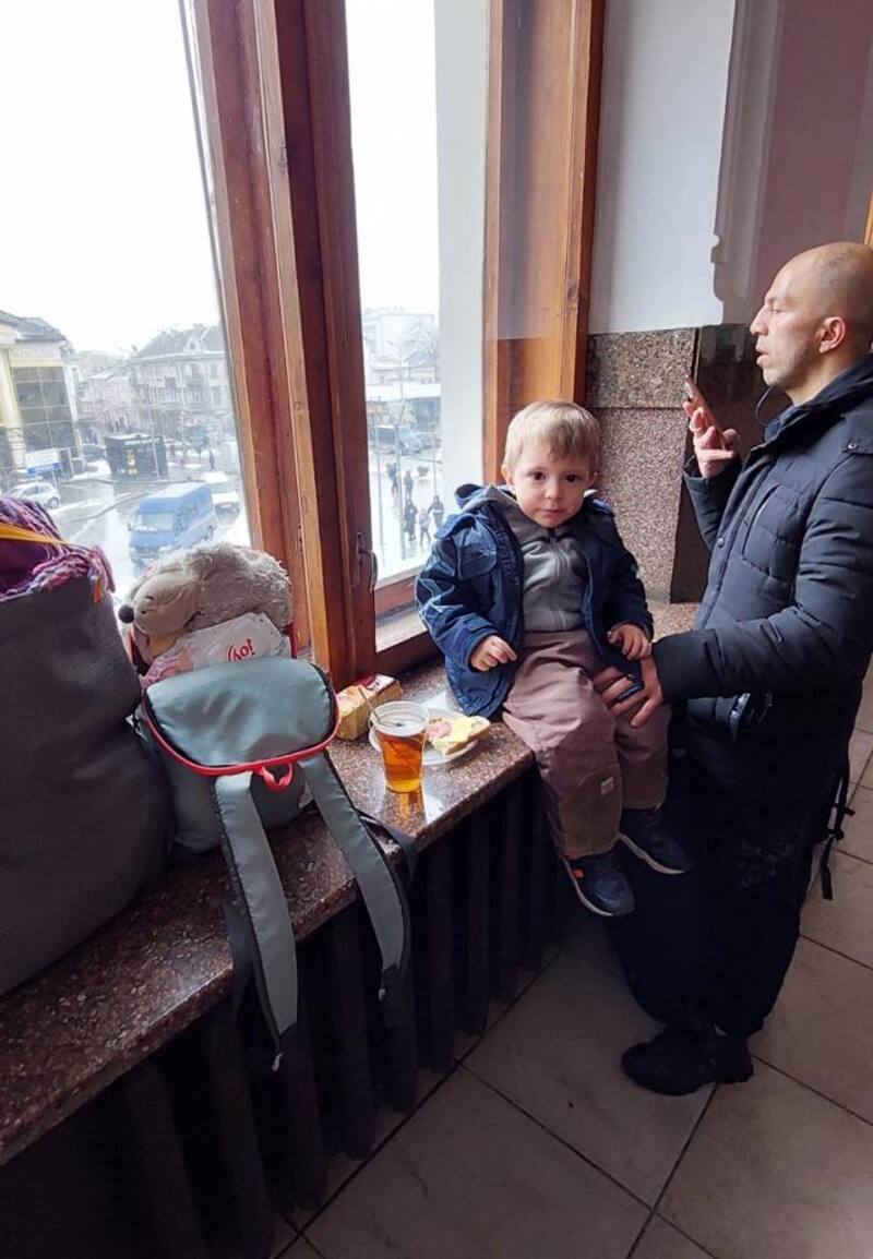 “Después de 20 horas de viaje y casi mil kilómetros recorridos, llegamos a la ciudad de Ternopol el 3 de marzo. Estábamos súper cansados, porque no pudimos dormir. La estación de esta ciudad era mucho más pequeña que la de Kharkiv y el flujo de gente también era mucho menor. Pero aún se notaba que la gente estaba escapando”.
