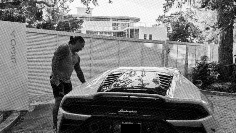 Frascone añadió el historial de multas de Ríos. Tenía tres por exceso de velocidad en Sarasota. Una del 16 de abril de 2019, cuando manejaba su Nissan blanco a 71 km/h en una zona donde se permitían 56 km/h. Otra del 2 de julio de 2020, arriba de un Corvette negro. Esa vez iba a 100 km/h en una zona donde sólo se podía andar a 48 km/h. La última era del 21 de junio de 2021, cuando fue sorprendido a 119 km/h en una zona donde el límite eran 64. Fue la misma época en la que Ríos dio a conocer en su Instagram que se había comprado un Lamborghini Huracán: un deportivo que pasa de 0 a 100 km/h en 2,9 segundos y tiene una velocidad máxima de 325 km/h.