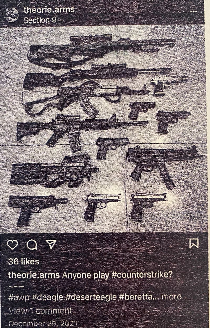 Ese día y el siguiente, al igual como lo venía haciendo desde octubre de 2019, Frascone posteó en su cuenta de Instagram, theorie.arms, fotos de algunas de sus 13 armas de asalto, algunas con miras telescópicas. En el perfil de esa red social, entonces, su descripción tenía esta leyenda: “Sin dioses ni reyes. Sólo hombres”.