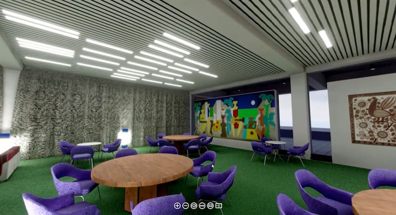 El edificio contaba entonces con 35 obras de los más renombrados artistas chilenos, creadas especialmente: murales, esculturas, un vitral y arpilleras de Roberto Matta, Nemesio Antúnez, Roser Bru, Gracia Barrios, José Balmes, Carlos Ortúzar, Mario Carreño y Mario Toral, entre otros.
