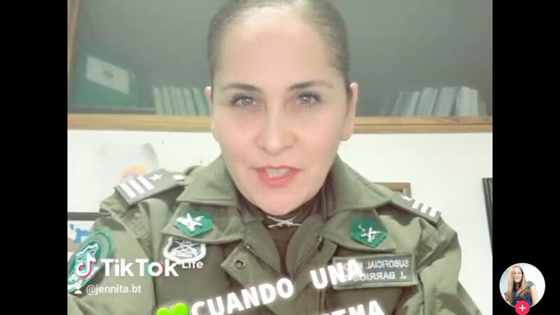 TikTok no es un lugar desconocido para los policías uniformados. Varios de ellos participan de esta red social y han obligado a la institución a generar un protocolo que reglamente la conducta de sus funcionarios en ese espacio. Jennifer Barrios es una de ellas. A través de videos no sólo informa a sus seguidores. También está sanando una vieja herida familiar.