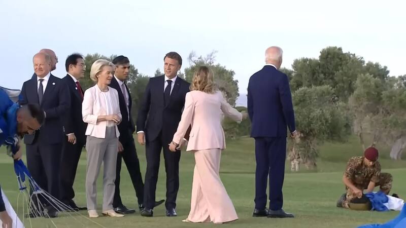 Fue durante la realización de un aterrizaje en paracaídas que, mientras los líderes mundiales aplaudían mirando de frente, el mandatario estadounidense se giró hacia su izquierda, sin aplaudir, y comenzó a alejarse del grupo. Levanta el dedo pulgar, y la anfitriona, la premier italiana Giorgia Meloni, cruza por enfrente de todos los presentes para tocarle el hombro y hacer que retome la concentración en quien parece ser un miembro del Ejército italiano.