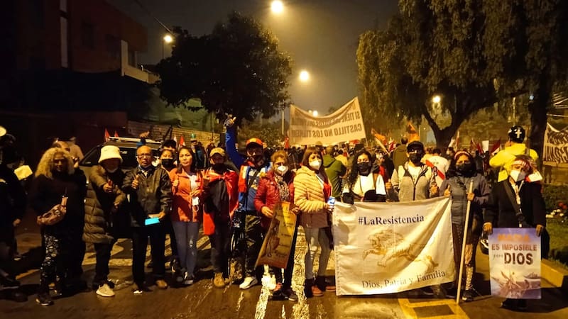 Bajo el lema “Dios, Patria y Familia” nació La Resistencia, un grupo extremista, religioso, vinculado al fujimorismo y que asegura tener la misión de defender la democracia en Perú. Es uno de los brazos del Frente Popular Democrático, organización que en los últimos años fue testigo directo del nacimiento de movimientos más violentos, como Los Combatientes y La Insurgencia. Juntos, han sido los protagonistas de un centenar de ataques contra una abultada lista de víctimas, que incluye un expresidente, políticos, fiscales, periodistas y quien sea oposición a su retórica difundida en redes sociales.