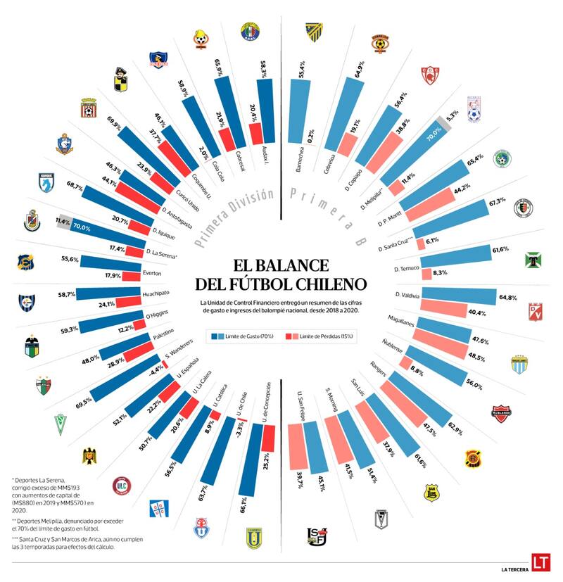 La Unidad de Control Financiero de Quilín entregó un balance en el último Consejo de Presidentes, que considera las últimas tres temporadas. En ese período, los azules y Santiago Wanderers fueron los únicos equipos que registraron números rojos. En cuanto al fair play financiero, solo Melipilla fue denunciado por superar el gasto límite del 70% en fútbol. La pandemia derrumbó la venta de entradas: hubo un déficit de $ 12 mil millones.