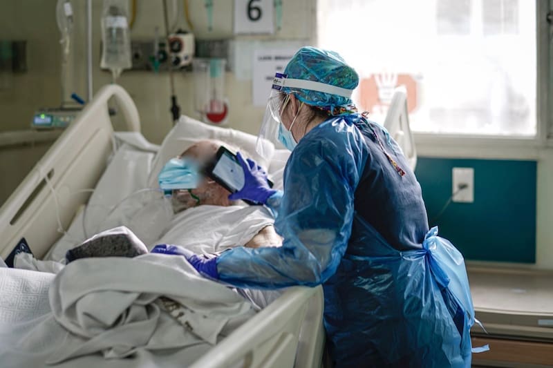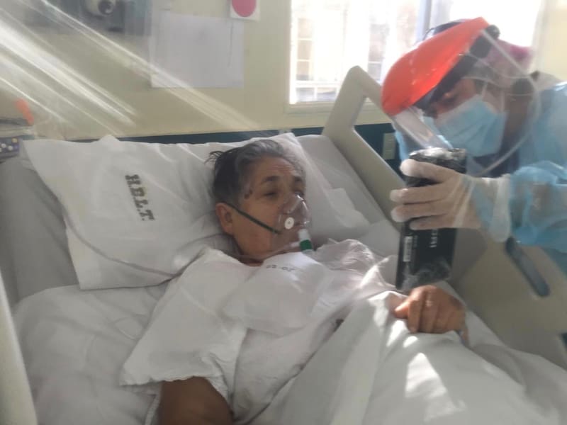 Dice: “Les voy a pedir permiso, porque don Alberto va a fallecer pronto y no le he puesto los audios que llegaron de su familia”. A lo lejos se escucha despacio una voz quebrada al teléfono. Es su hija quien le habla al padre de 90 años: “Quiero pedirle perdón, papá, si me porté mal, y le quiero decir que lo quiero mucho, que lo extraño y que pronto nos veremos. Lo amo”. Alberto, el paciente de la cama seis, que antes estaba completamente dormido, y cada cierto rato inflaba su pecho en una respiración profunda pero interrumpida por su dificultad respiratoria, de pronto comienza a respirar más agitado. También abre los ojos.