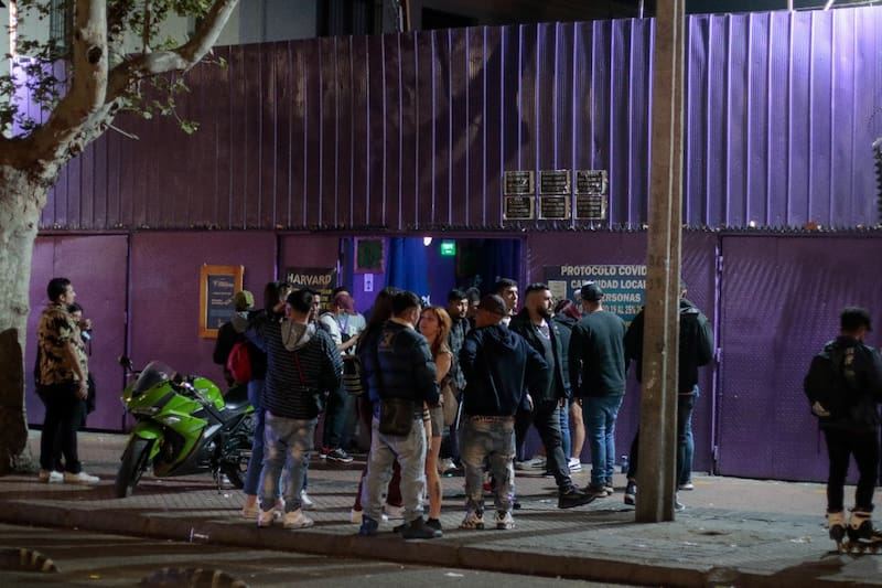 Pero durante toda la noche hubo fila en la entrada. Había que entrar con mascarilla, carnet de identidad y Pase de Movilidad. Pero al igual que en la fiesta en Huechuraba, los tapabocas no se usaban ni siquiera para ir al baño, pese a la insistencia de los organizadores.