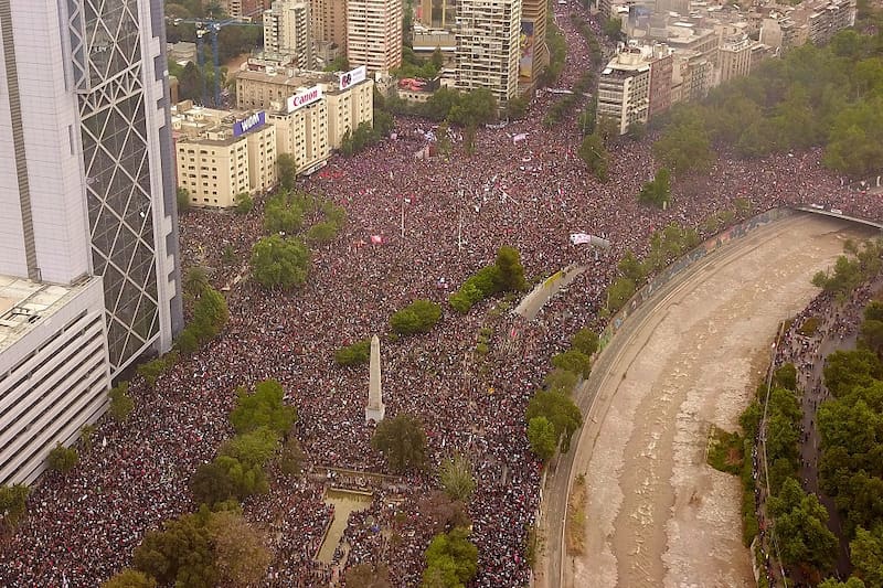 Al ambicioso paquete de medidas propuesto por el Mandatario, la población respondió el 25 de octubre con la mayor concentración pública de los últimos 30 años, es decir, desde el retorno a la democracia: Más de 1,5 millones de personas se congregaron en Santiago en una marcha que pidió la salida de Piñera y reformas sociales más profundas.