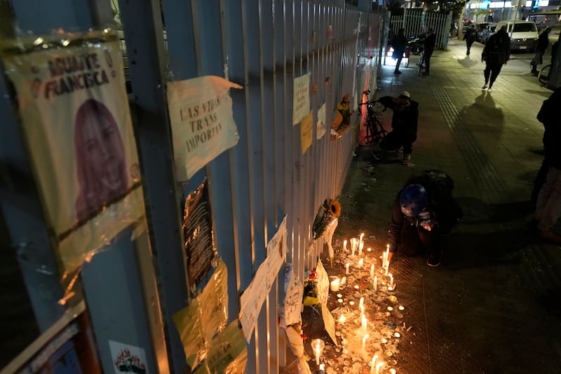 En un espacio oscuro, pero iluminado con algunas velas, hubo flores y un lienzo de colores colgando en la pared, en la misma sala donde reposaba el féretro de la malograda reportera.