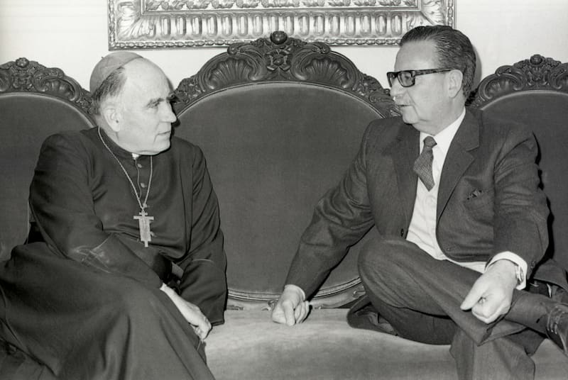 Le expresé que entendía sus buenos propósitos y que cualquier intento por llegar a acuerdos era razonable. También le señalé que el diálogo que habíamos sostenido hacía 15 días había fracasado no por nosotros, sino por la incapacidad del Presidente Allende de ponerse por sobre los partidos de la Unidad Popular, y en especial por sobre su propio partido, y que, aunque no tenía muchas esperanzas de que un nuevo diálogo pudiera ser distinto, tal como se lo había expresado, estaba dispuesto a seguir intentando un acuerdo. El cardenal entonces me dijo: «Yo no quiero intervenir en absoluto en la política. Esta invitación no lo obliga a nada. Solo quisiera ofrecer una mesa amigable, alrededor de la cual puedan intercambiarse ideas y ojalá llegar a soluciones. Sería muy duro para ustedes que la historia, el día de mañana, les recriminara el no haber dado una oportunidad de diálogo en un momento tan crítico de Chile. Yo no quisiera que a ustedes, como cristianos, se les imputase esta falta de comprensión y caridad» (1).