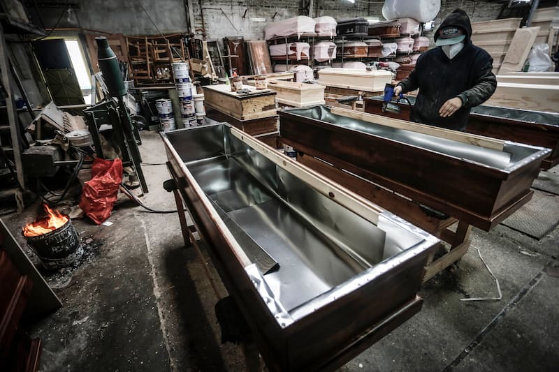 Con las cifras de muertes, que hoy suman 2.870, según la Asociación Gremial de Dueños de Funerarias, hay cementerios que reciben 50 funerales al día. Y cada uno de esos muertos presionan a una industria que funciona con manufactura artesanal.
