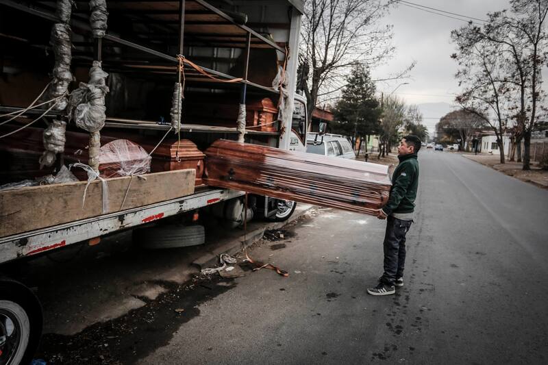 Había despachos de 40 urnas a La Serena y Antofagasta cargados en el camión, que nunca alcanzaban a salir, porque llegaban pedidos más urgentes antes. No pasó mucho para que varios, producto del toque de queda, no alcanzaran a ducharse antes de volver a sus casas. Y en mayo, comenzaron a fallecer conocidos: un funerario de 36 años en Quillón, un vendedor de un cementerio en Santiago. Gente que durante una llamada de negocios decía que estaba bien, pero dos semanas más tarde aparecía conectada en un hospital.