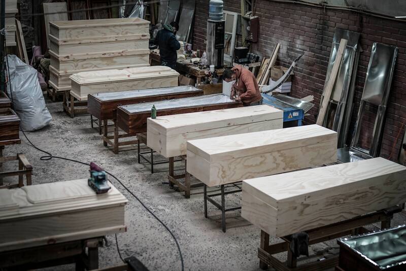 En el taller, Manuel González manejaba un stock de 120 ataúdes, pero seguían produciendo más. Empezaron a trabajar hasta más tarde y también los fines de semana. Y todo, aún así, era manejable. Paul Carrasco seguía realizando partidas de nueve féretros quincenales, pero pronto esos tiempos ya no eran suficientes: