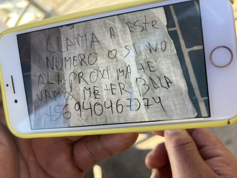 La explicación que le dio esa mujer era que estaba siendo extorsionada. Estaba recibiendo mensajes en su celular donde le pedían dinero. A otro local también le llegó un papel, uno de esos días. “Llama a este número, solo Whatsapp. Atte: Los Chotas Nueva Generación”.