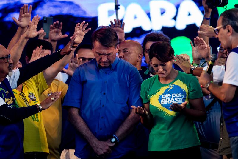 “Hablemos de política hoy, sí, para que mañana nadie nos prohíba creer en Dios”, dijo Bolsonaro a sus simpatizantes en el centro de Juiz de Fora, la misma ciudad de Minas Gerais donde cuatro años atrás fue apuñalado en un mitin, un ataque que lo catapultó a la presidencia de Brasil. Más temprano, al dirigirse a los religiosos, recordó las iglesias cerradas durante la crisis sanitaria de la Covid-19, cuando estados y municipios implementaron políticas de aislamiento social para tratar de frenar la propagación del virus. Según el diario Folha de Sao Paulo, el PT está lanzando una ofensiva para desmentir los rumores de que Lula cerrará iglesias evangélicas.