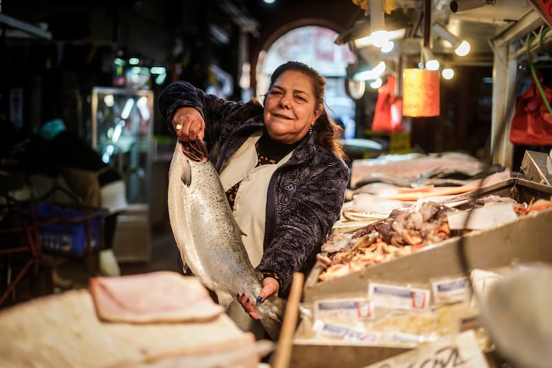 El Mercado se convirtió en una fuente de ingresos para que familias completas salieran adelante, como Malena Puertas (68) y sus ocho hijos e hijas. Partió vendiendo cabezas de ajo y hoy tiene un restorán y una pescadería.