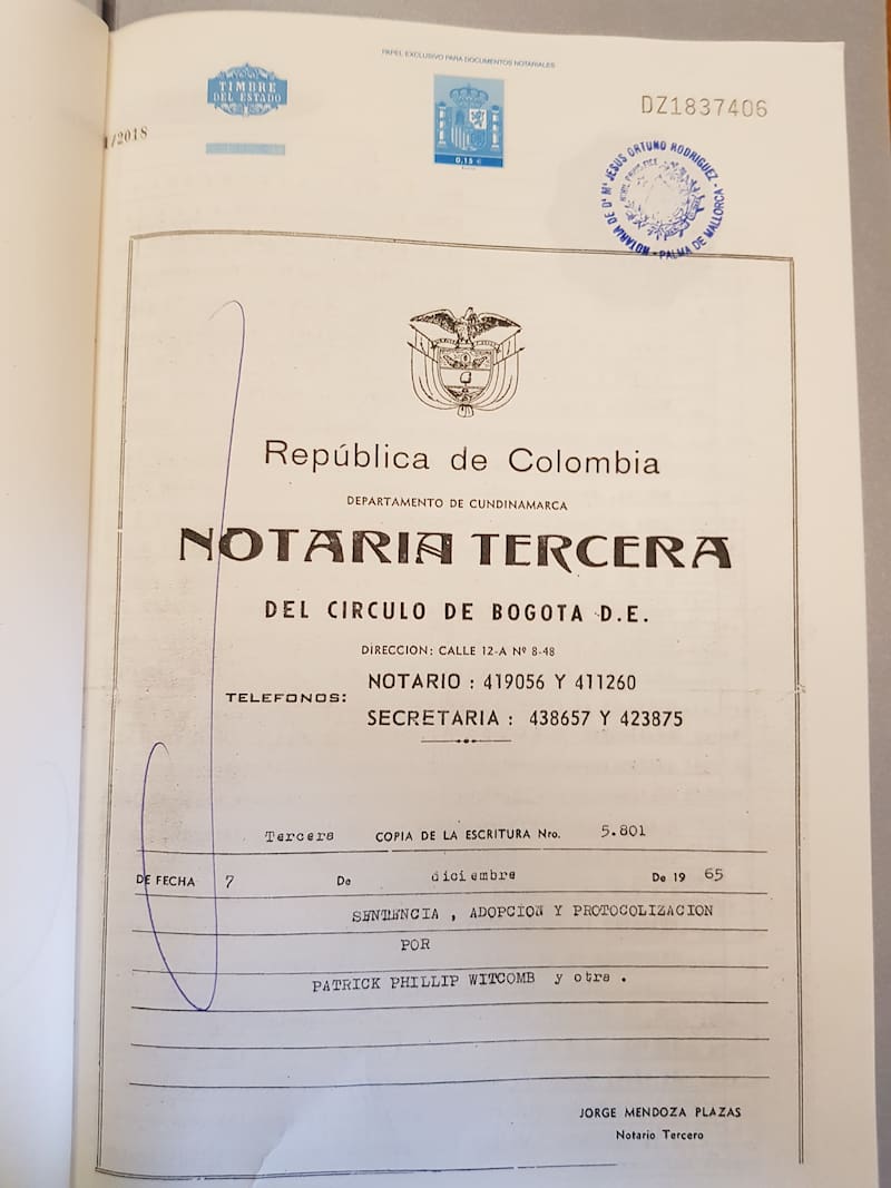 En diciembre de 1965, Patrick y su esposa Joan adoptaron oficialmente al niño y cambiaron su nombre a Phillip Witcomb. “Me hicieron un inglés”, dice. Los documentos oficiales de adopción que recibió la pareja revelaron que la madre muerta de su hijo, María Lucía Sendoya, tenía 14 años. El padre biológico del niño era Pablo Escobar Gaviria, un ladrón de bancos de 16 años que vivía en Medellín y que se convertiría en el narcotraficante más famoso y rico del mundo. Sendoya Escobar cree que su concepción fue el resultado de una violación. “Mi madre solo tenía 14 años cuando me tuvo y Escobar 16. No pudo haber sido sexo consensuado a esa edad y es difícil lidiar con eso”.