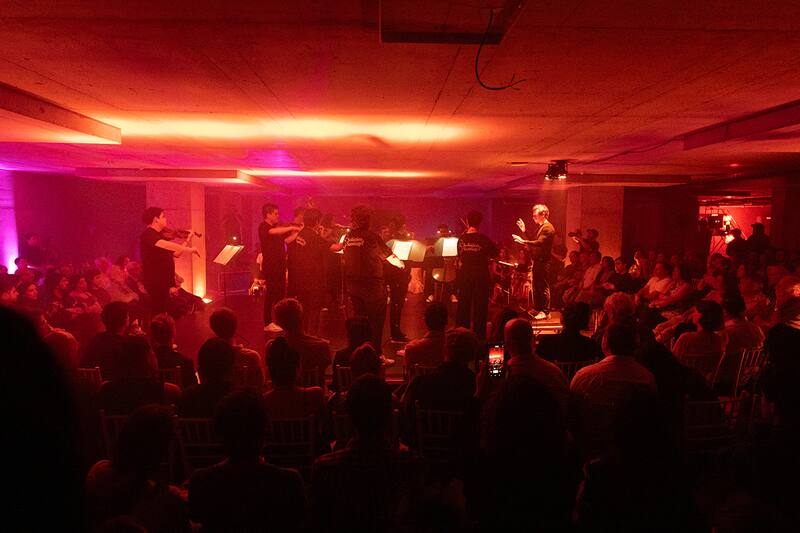 El escenario es un antiguo galpón en Santa Elena, a pasos del Metro Ñuble. El público se distribuye al interior, entre luces, neones y rayos láser que crean un ambiente contemporáneo. Los músicos visten jeans, poleras y zapatillas. Perfectamente podría ser una tocata de rock. Pero esta es una noche de música clásica: es el segundo concierto del ciclo Clásica No Convencional. El show comienza con la Tocata y fuga de J.S. Bach, interpretada en un órgano instalado en altura, en un segundo piso. Al finalizar la pieza, el público aplaude respetuosamente. Entonces, el director Paolo Bortolameolli toma el micrófono y rompe el hielo: