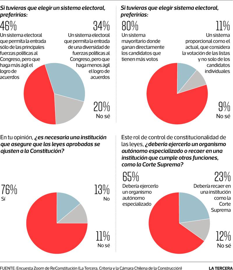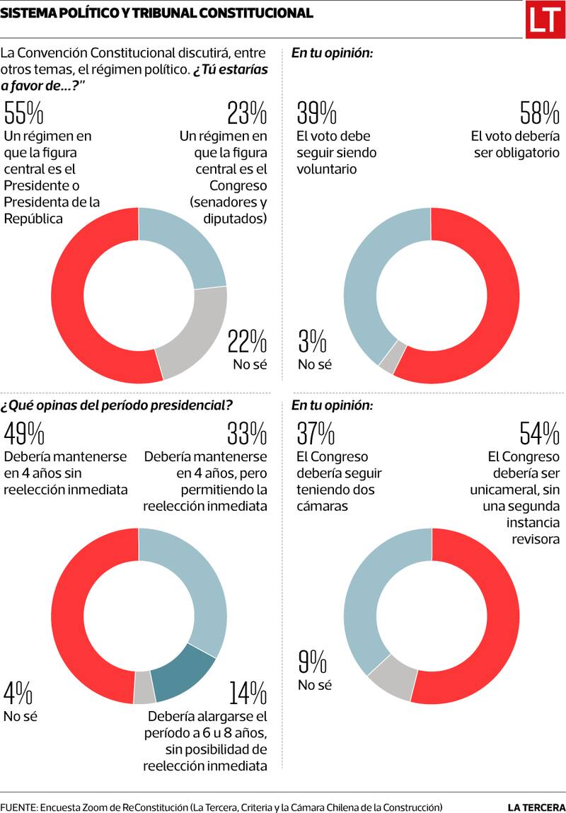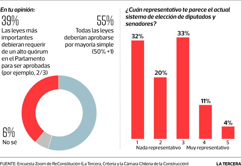 Esas dos preguntas son centrales en la discusión sobre sistema político que hoy la Convención Constitucional, y específicamente la comisión ad hoc, están realizando. Y, además, son dos interrogantes que fueron realizadas en la encuesta Zoom de ReConstitución, una iniciativa de La Tercera, Criteria y la Cámara Chilena de la Construcción.