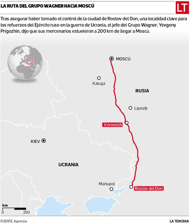 “Iban a desmantelar PMC Wagner. Salimos el 23 de junio en la Marcha de la Justicia. Ese día avanzamos hasta estar a casi 200 kilómetros de Moscú. En ese tiempo no hemos derramado ni una sola gota de sangre de nuestros combatientes”, relató Prigozhin en un mensaje de audio difundido en Telegram. “Ahora ha llegado el momento en que se podría derramar sangre rusa. Por eso comprendemos la responsabilidad este derramamiento de sangre rusa de una de las partes y vamos a dar marcha atrás a nuestros convoyes y a regresar a los campamentos según el plan”, añadió, en alusión a sus instalaciones en Ucrania, donde combaten junto a las tropas rusas.