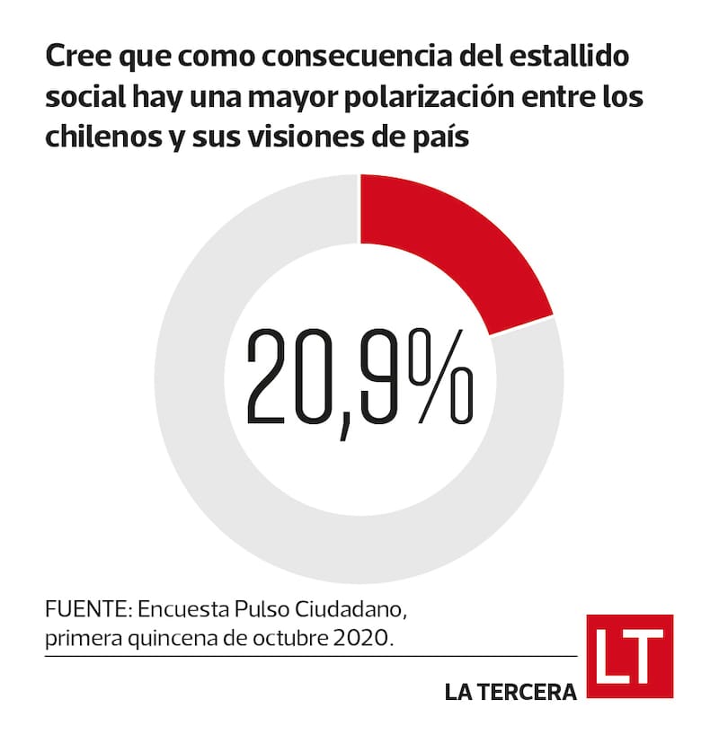 La sensación de una sociedad dividida ya la comenzaron a percibir algunos: un 20,9% de quienes participaron del último estudio quincenal de Pulso Ciudadano, en octubre, asegura que entre las consecuencias del estallido social ha habido una mayor polarización entre los chilenos y sus visiones de país. Pero aunque se siente como un fenómeno real, y los algoritmos de las redes sociales han actuado como espejismo para reflejar esa impresión, lo que ocurre según el debate académico no sería precisamente una polarización de la ciudadanía. Más bien serían otras formas de polarización nunca antes vistas desde el retorno a la democracia, y que vienen a concluir que ya no es la división de izquierdas y derechas lo que conflictúa a los chilenos.
