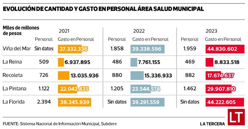 Por el lado del gasto en ese personal, el alza fue más contenida, pasando de $ 7.978 millones en 2020 a $ 10.259 millones en 2023, un aumento de un 28%, explicado según la entidad por la nueva ley de plantas municipales que creó nuevos grados. “Aún así, seguimos siendo de los municipios con la planta más pequeña, con menores pagos y grados en comparación con otras regiones de la RM”, detallaron.