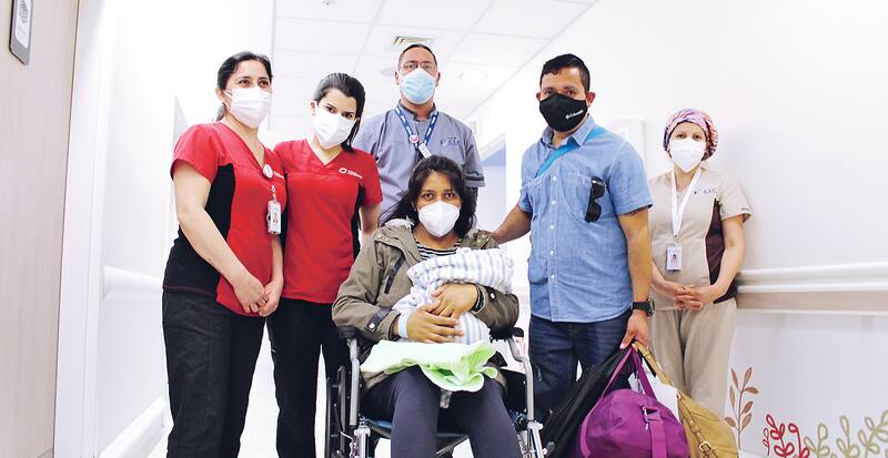 El ginecólogo Rogelio González la recibió en su ingreso a la clínica. “Ella llegó con 25 semanas de embarazo. Muy grave, en estado crítico, con una neumonía bilateral. Se intubó e ingresó a la UCI. Allí estuvo poco más de una semana, en que estuvimos tratándola a ella y monitoreando muy de cerca a su hijo. En las embarazadas se ha visto que un 6% necesita cuidados intensivos y el 3% ventilación mecánica. A ella le tocó ese pequeño porcentaje, que tiene un riesgo vital tremendo”, cuenta el profesional.