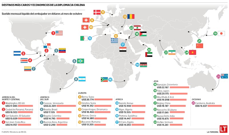 Por Francisco ArtazaSueldos en el extranjero: lo que ganan los embajadores chilenos